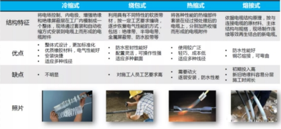除了供電區(qū)域外,還要看該供電區(qū)域內(nèi)大多數(shù)附件選用的資料和設(shè)備辦法。圖1羅列了配電電纜附件首要品種的優(yōu)缺點(diǎn)。