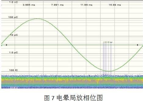 屬外部發(fā)生的局放,如電場(chǎng)會(huì)合區(qū)域,與其他類型局放有較大的不同,能夠準(zhǔn)確地檢測(cè)。因?yàn)榉烹姲l(fā)生在空氣中,電極兩頭不會(huì)發(fā)生電荷累積,因此,放電首要發(fā)生在電壓的極點(diǎn),并且放電開(kāi)始電壓與完畢電壓是一起的。此外,當(dāng)外加電壓增大時(shí),局放時(shí)辰也會(huì)增加。