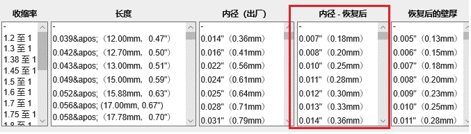 列如,TE的RNF-100系列熱縮套管的出廠內(nèi)徑是1.0”,修正后內(nèi)徑是0.5”。那合適的運(yùn)用物體直徑規(guī)劃如下: