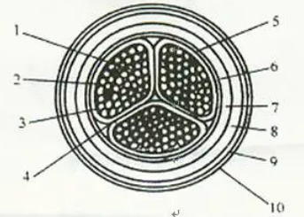 三芯油浸紙絕緣電力電纜結(jié)構(gòu)圖