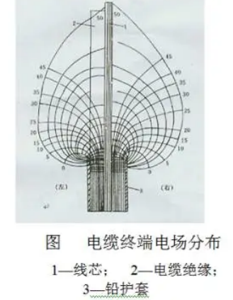當電纜的絕緣屏蔽層切開之后,在外屏蔽端口將產(chǎn)生電應(yīng)力集中現(xiàn)象,電場突然變化,并且電纜終端處電場分布畸變要比接頭中的電場畸變嚴重,電場在該處不但有垂直分量,而且出現(xiàn)切向分量。