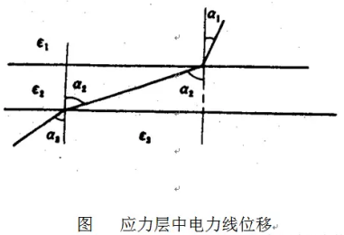 由此可見,兩種介質(zhì)的介電常數(shù)差別越大,發(fā)生折射的角度也越大,當高介電常數(shù)的材料有一定厚度時,電力線在另一面的位移就大,位移越大,場強越小。
