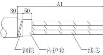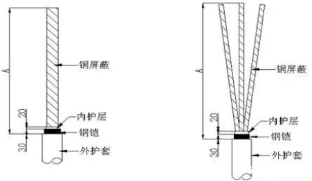 根據(jù)圖7尺寸剝切電纜外護(hù)層、鎧裝和內(nèi)護(hù)層。