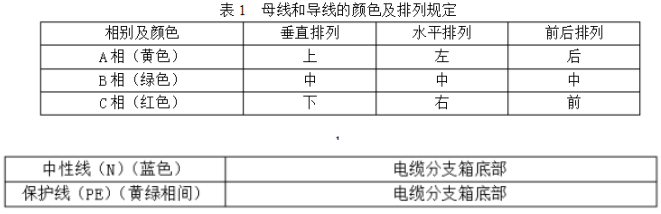 (1)選用選用矩形母線,原料為T2電工銅。并選用不同相色熱縮套管做絕緣處理。熱縮套管不得開裂和起皺,母線接頭處用熱縮絕緣盒關閉。絕緣熱縮護套材料應具有阻燃、防腐、抗老化的要求,老化壽數(shù)不小于30年,詳細實驗方法和要求參照GB/T2951.14中規(guī)矩實行。(2)銅排截面的選擇應保證可以耐受IEC60298中舉薦的額定短時耐受和峰值耐受電流的要求,N相(L0)母線與三相母線標準相同,PE排截面不低于相排截面的1/2。其間設于戶外的電纜分支箱裝備4根母排(3L+PEN),設于戶內的電纜分支箱裝備5根母排(3L+N+PE)。(3)設備中母線和導線的色彩及擺放應契合GB/T4026和GB7947及表1的規(guī)矩;