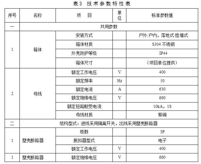 低壓電纜分支箱技術參數(shù)特性見表3