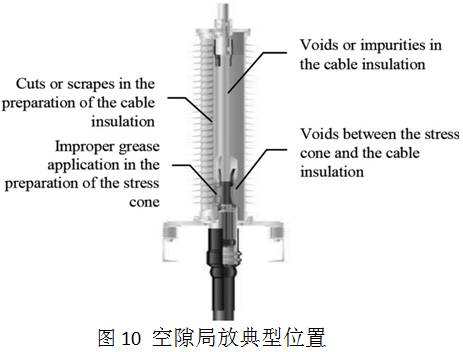 空隙局放的典型缺陷有絕緣氣隙、混入雜質(zhì)以及工藝不良等原因,其局放易發(fā)點如圖10所示。