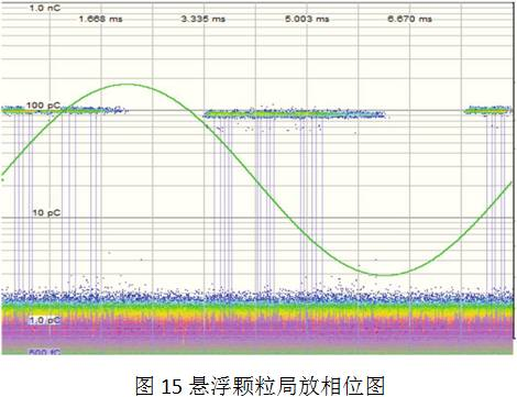 懸浮顆粒以SF6以及N2作為絕緣介質(zhì)的設(shè)備,安裝或運行中混入顆粒。改變電場分布,產(chǎn)生局放。該類型局放分布如圖15所示。局放幅值基本一致,集中在某幾個相位。隨著外加電壓的增高,放電幅值保持一致,但頻率增加。